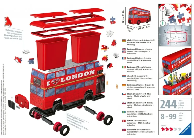 Innehåller 216 numrerade pusselbitar, 28 accessoarbitar & instruktioner.