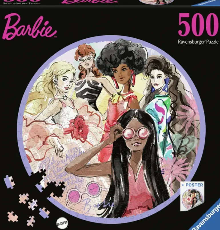 I samarbete med Mattel, företaget bakom succédockan Barbie, har Ravensburger skapat detta härliga retromotiv av kända Barbiedockor. Den första Barbien skapades 1965 och dockorna är fortfarande mycket populära leksaker och samlarobjekt.