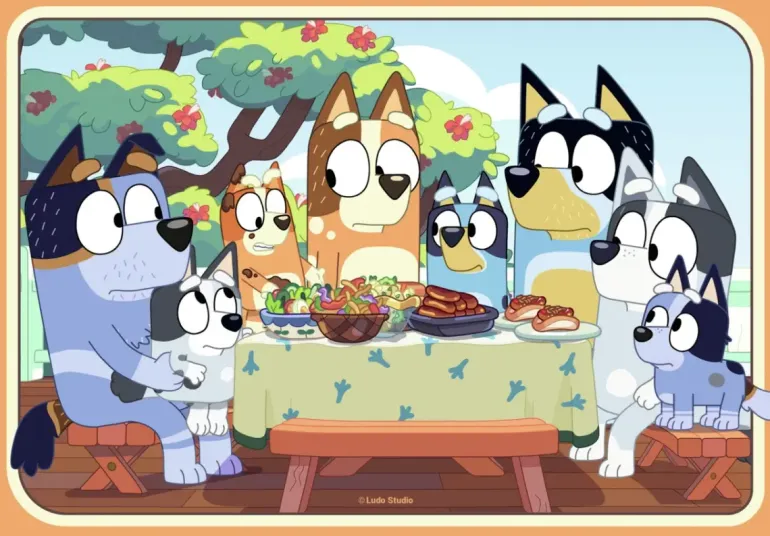 Två pussel på 24 bitar vardera, med olika motiv från den tecknade barnserien Bluey.