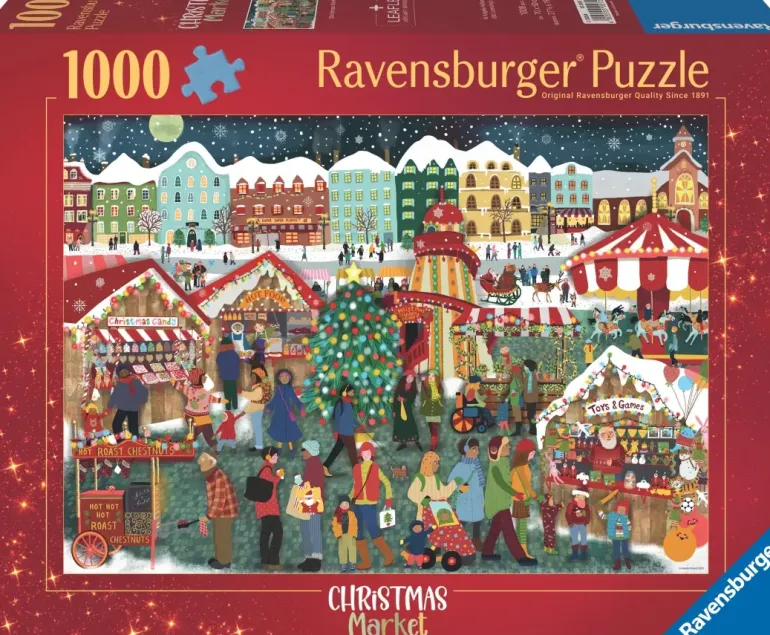 Julen är snart här och staden har anordnat en julmarknad! I motivet ser man ett gäng glada besökare gå runt mellan de olika stånden där det säljs leksaker, mat, snacks, godis och annat smått och gott.