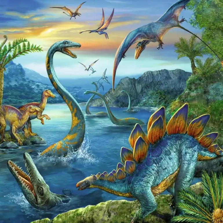 Tre pussel på 49 bitar vardera, med olika motiv av Dinosaurier.