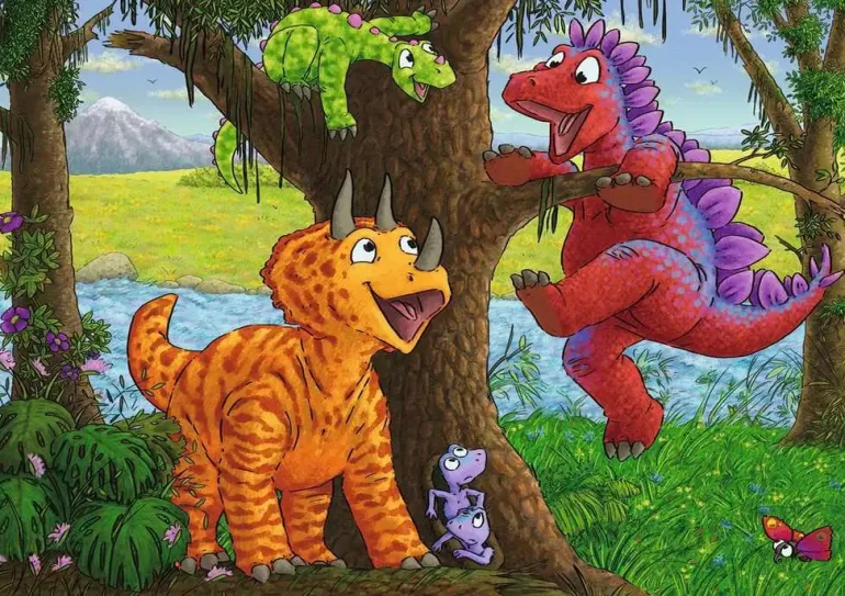Två pussel på 24 bitar vardera med olika dinosauriemotiv.