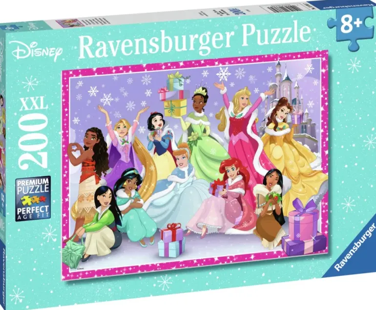 Disneys prinsessor har samlats för att fira in Julen tillsammans och ta en bild framför slottet. Alla är uppklädda, de har paket med sig och snöflingorna dalar ner. Säg omelett!