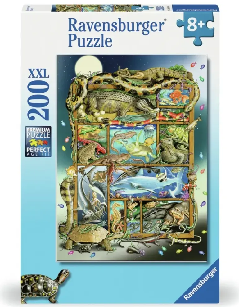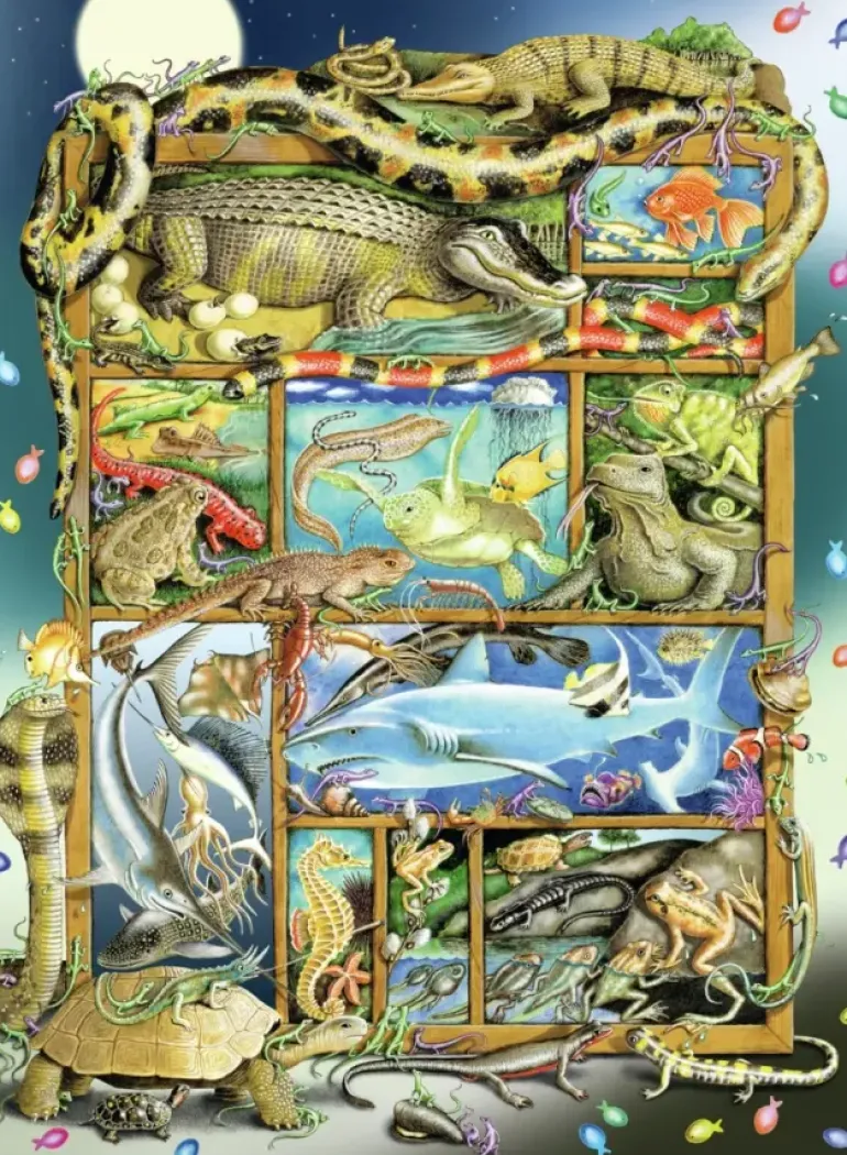 Ett kollage fullt av vattenlevande djur och reptiler.
