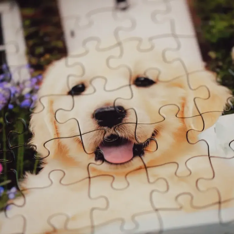 Pusselmotivet är skapat av fotografen Greg Cuddiford, känd för sina djurporträtt.