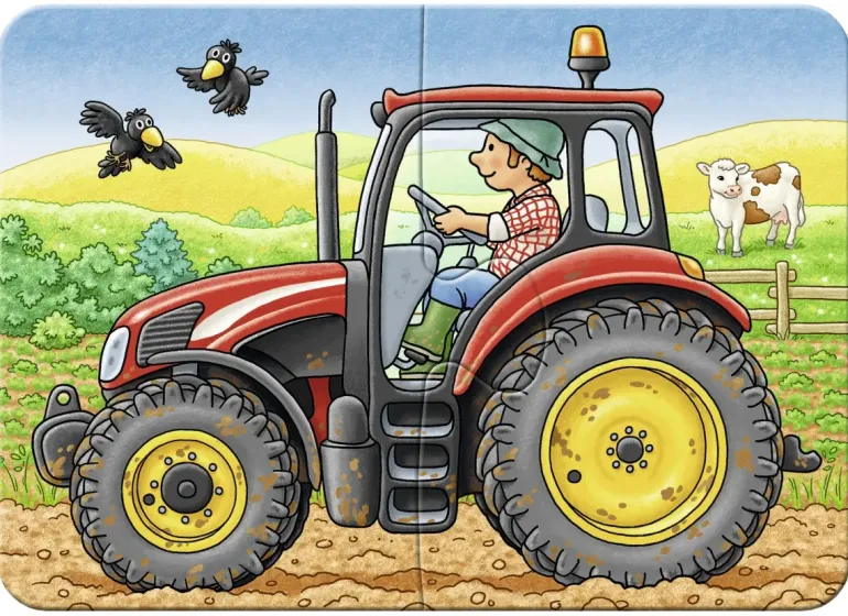 Tre pussel på 2, 4, 6 och 8 bitar. Samtliga med olika motiv av yrkesfordon i jobb. En rolig utmaning för små pusslare där man kan öka antalet bitar när man behöver en ny lite svårare pusselutmaning.