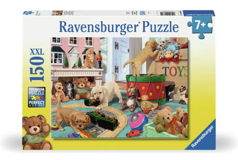 Lekdags! I barnrummet finns det massor av spännande leksaker att utforska för familjens små fyrbenta vänner. Kattungarna och hundvalparna leker sida vid sida och prövar leksakerna både med tassar och nosar.