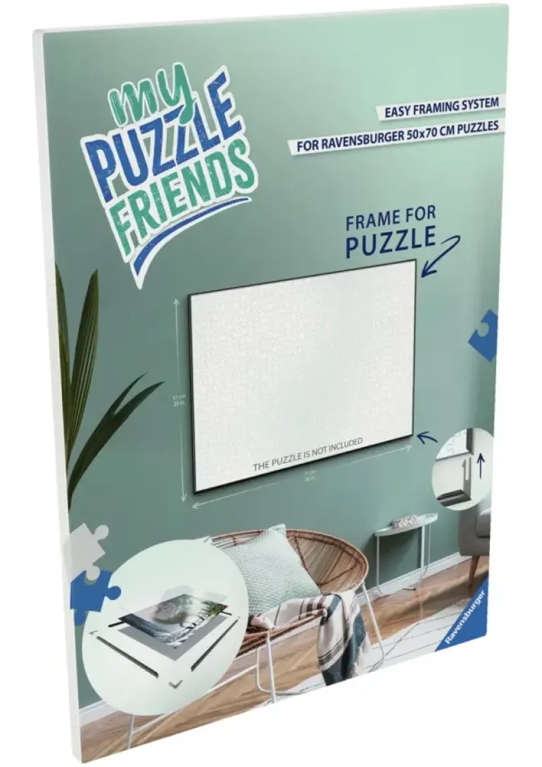 Ramen är 51 x 71 cm och rymmer ett 1000-bitars motiv av standardstorlek (50 x 70 cm). Allt du behöver ingår. Ramen är i svart plast.
