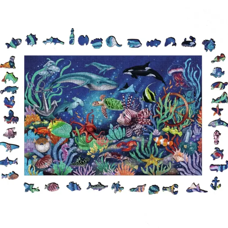 Det här pusslet i trä ger dig nya pusselutmaningar på ett stimulerande och lekfullt sätt! Pusselbitarna är utskurna i trä och bitarna är unika, en del av bitarna har formen av olika djur och växter.