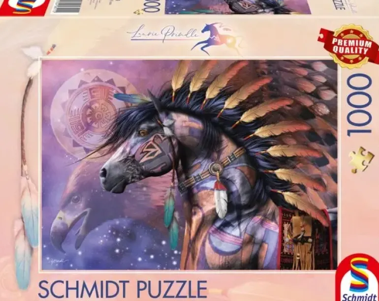 Fantasymotiv av illustratören Laurie Prindle. En ståtlig häst målad som en Shaman, med fjädrar i manen och utsmyckningar i pärlor och läder. I bakgrunden ser man en örn och en stjärnhimmel i lila och rosa toner.
