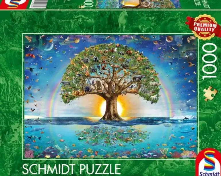 Någon stans mitt i ett hav står livets träd, med rötterna sträckta ned i turkosblått vatten och sin stora gröna krona som tornar upp sig mot den blå himlen. Solen strålar genom bladverket och en regnbåge sträcker ut sig i bakgrunden. Här ges liv åt världens alla djur! Ett mycket detaljrikt motiv fullt av liv!