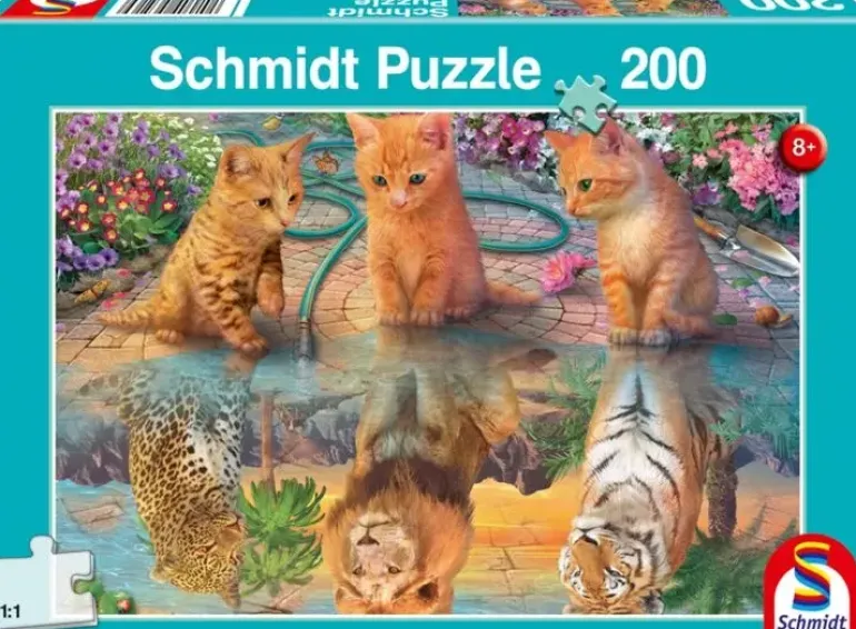 Tre små kattungar sitter i en trädgård omgivna av blommor och fjärilar. En vattenslang sprutar vatten och har skapat en liten pöl framför dem. De blickar ner i sin spegelbild och drömmer om framtiden, hur kommer de att se ut när de blir stora? Vilka äventyr kommer framtiden att bära med sig?!