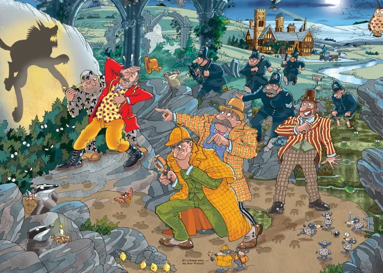 Detektiven följer spåren av tassavtryck, men stämmer verkligen hans teori, eller är det någon som försöker lura Sheer-Luck på villospår? Kommer detektiven att lyckas kasta ljus över de lurarande skuggorna i denna mörka natt? Använd din fantasi och ledtrådarna på lådan för att pussla ihop vad som kommer att hända härnäst! Kan du lyckas lägga pusslet och ta reda på sanningen?