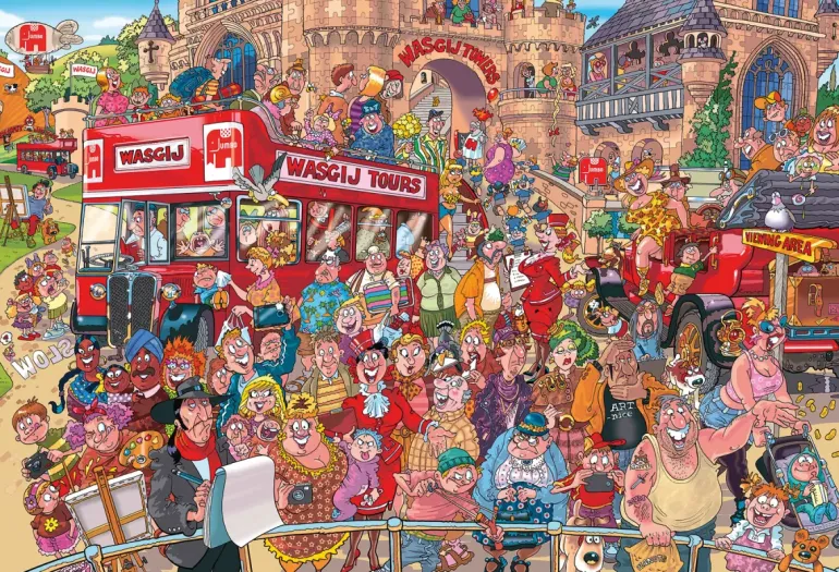De glada besökarna kan njuta av dagen genom att åka med Wasgij Tours öppna buss och promenera runt ”Wasgij Towers”. En folkmassa har också samlats framför utsiktsplatsen för att bevittna något magiskt… men vad är det egentligen de får se där på andra sidan räcket? Lägg pusslet och ta reda på svaret!